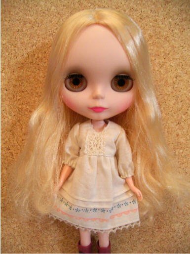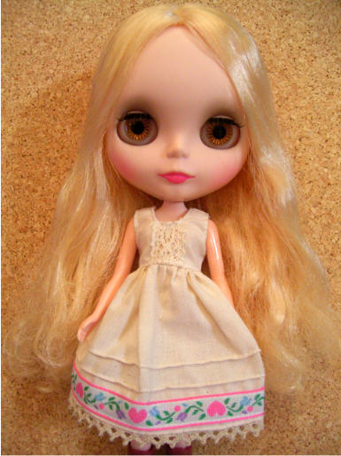 袖なしの生成りのワンピースです。ハート柄のチロリアンで明るさを★