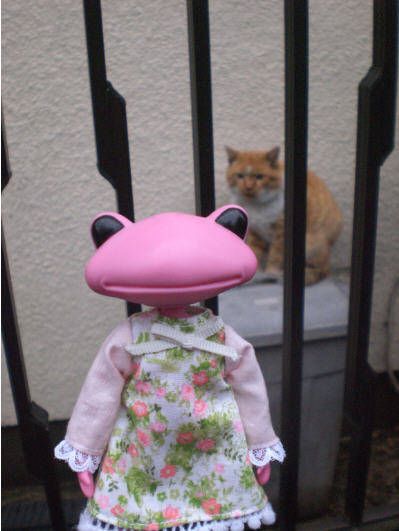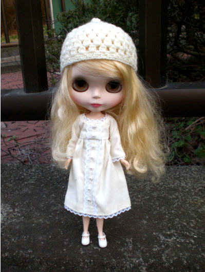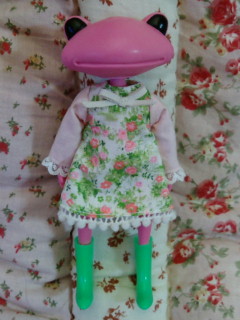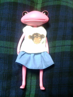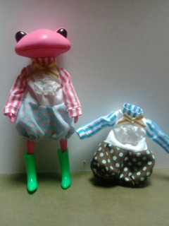 着せる服が無くて、昔作ったショボ服を...スカートはバービーの?